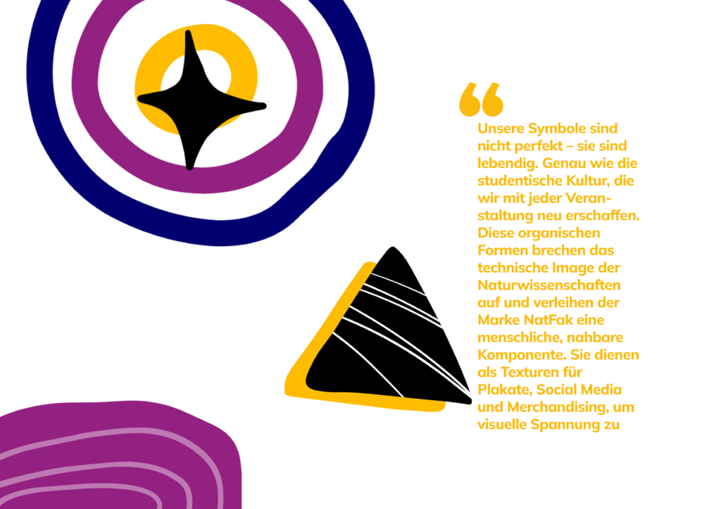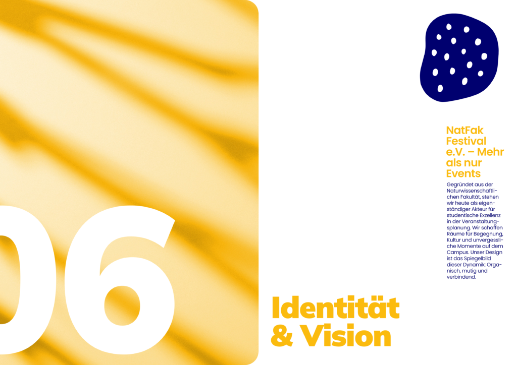 Nach der Abspaltung von der Naturwissenschaftlichen Fakultät benötigte der NatFak Festival e.V. eine eigenständige Identität, die seine Unabhängigkeit unterstreicht. Die Aufgabe bestand darin, ein Design-System zu entwickeln, das die Wurzeln des Vereins ehrt, sich aber gleichzeitig klar von der Konkurrenz in der Region abhebt. Eine zusätzliche Schwierigkeit lag darin, ein System zu schaffen, das so flexibel und intuitiv ist, dass es von den ehrenamtlichen Mitgliedern auch ohne tiefgreifende Designkenntnisse im Alltag – etwa für Social Media – konsistent angewendet werden kann